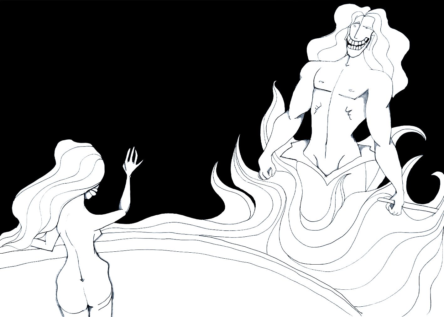 Mit valg af at fremstille Agnete og Havmanden som køns-stereotypiske figurer – en stærk, maskulin havmand og en feminin Agnete med slanke former – var bevidst. Dette valg understøttede den kontrast, jeg ønskede at fremhæve: selvom Agnete passer ind i de traditionelle kvindelige normer, er det hende, der tager den afgørende beslutning om at bryde op fra havet og forlade sin familie. Det er en modstilling af de typiske kønsroller, hvor hun handler uden hensyn til konsekvenserne, og havmanden står tilbage med ansvaret for børnene.