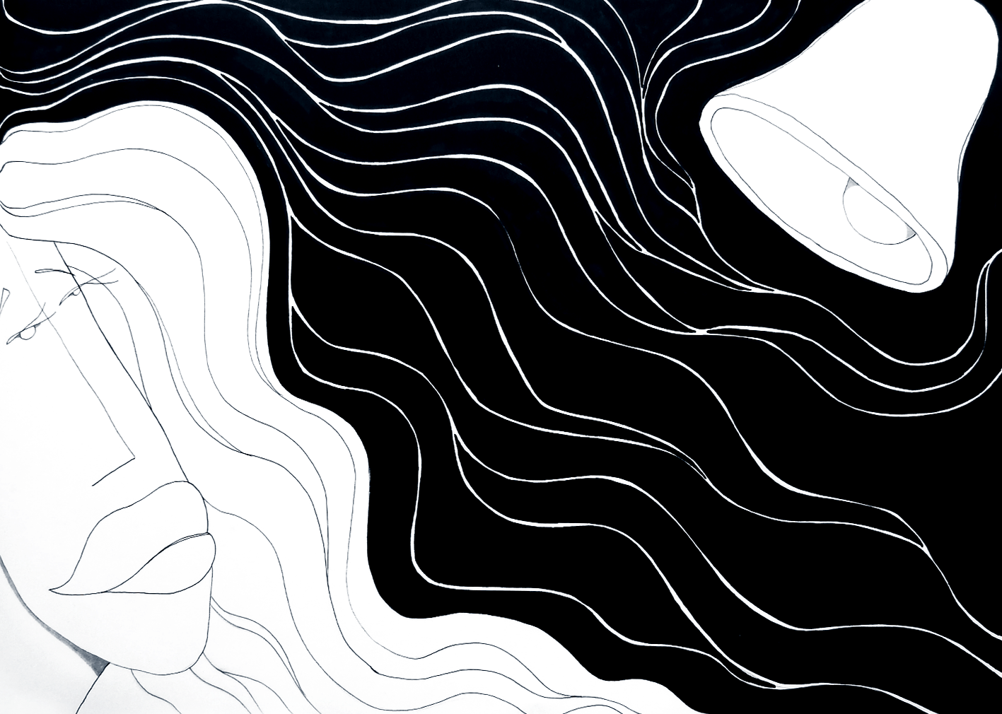 I mine illustrationer brugte jeg en simpel, men stærk sort streg og bølger for at skabe dramatiske kompositioner, der formidlede fortællingens følelser og dynamik. En af de centrale metaforer, jeg introducerede, var en itureven kontrakt, som et symbol på moderne skilsmisser og forliste ægteskaber. For at vise Agnetes manglende selvindsigt og refleksion over sine handlinger, tegnede jeg et spejl foran hendes ansigt. Dette spejl skulle illustrere hendes manglende evne til at se sig selv og sit ansvar i situationen – hun er fanget i en illusion om frihed, som egentlig er en ny form for bånd til samfundets normer.