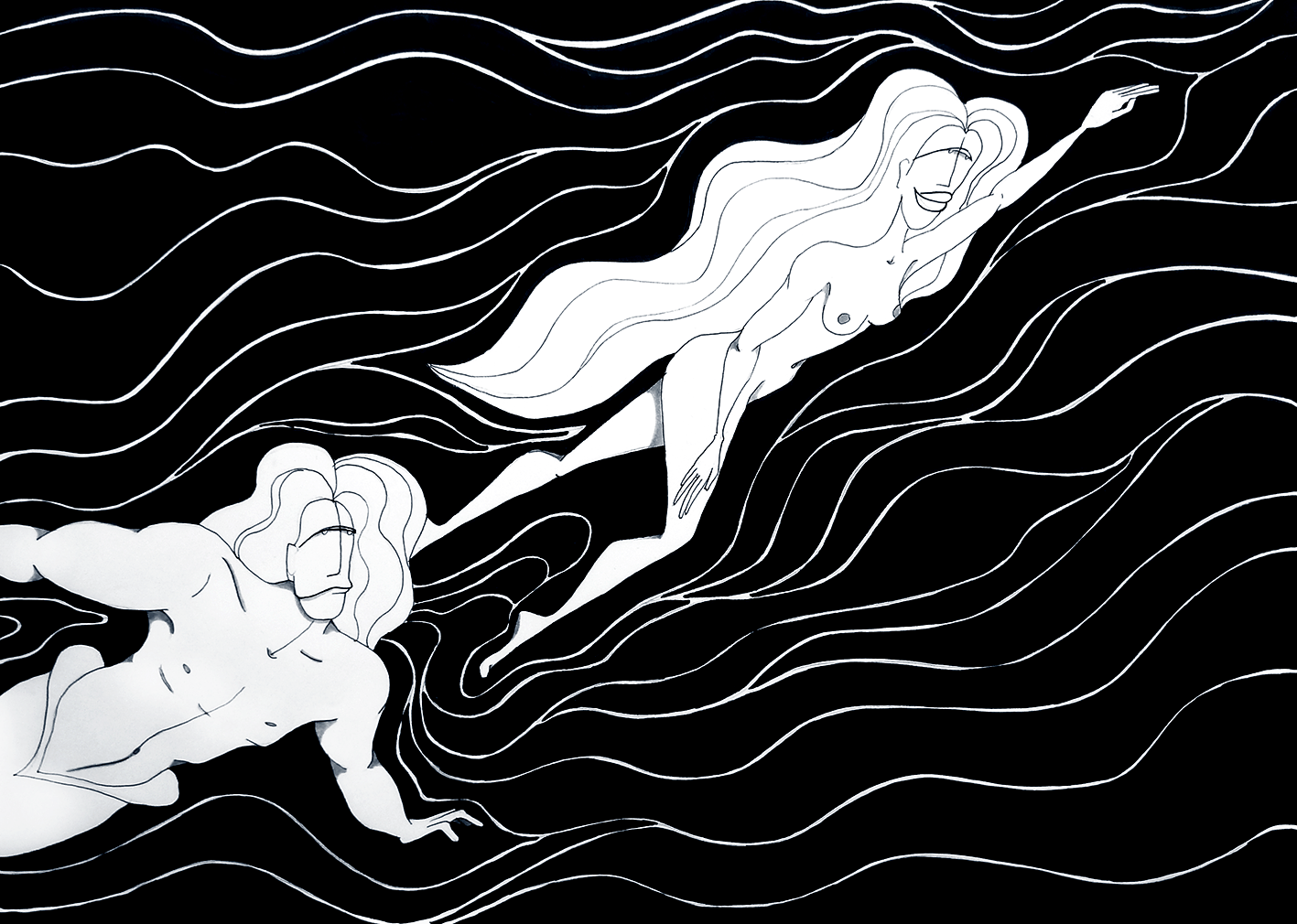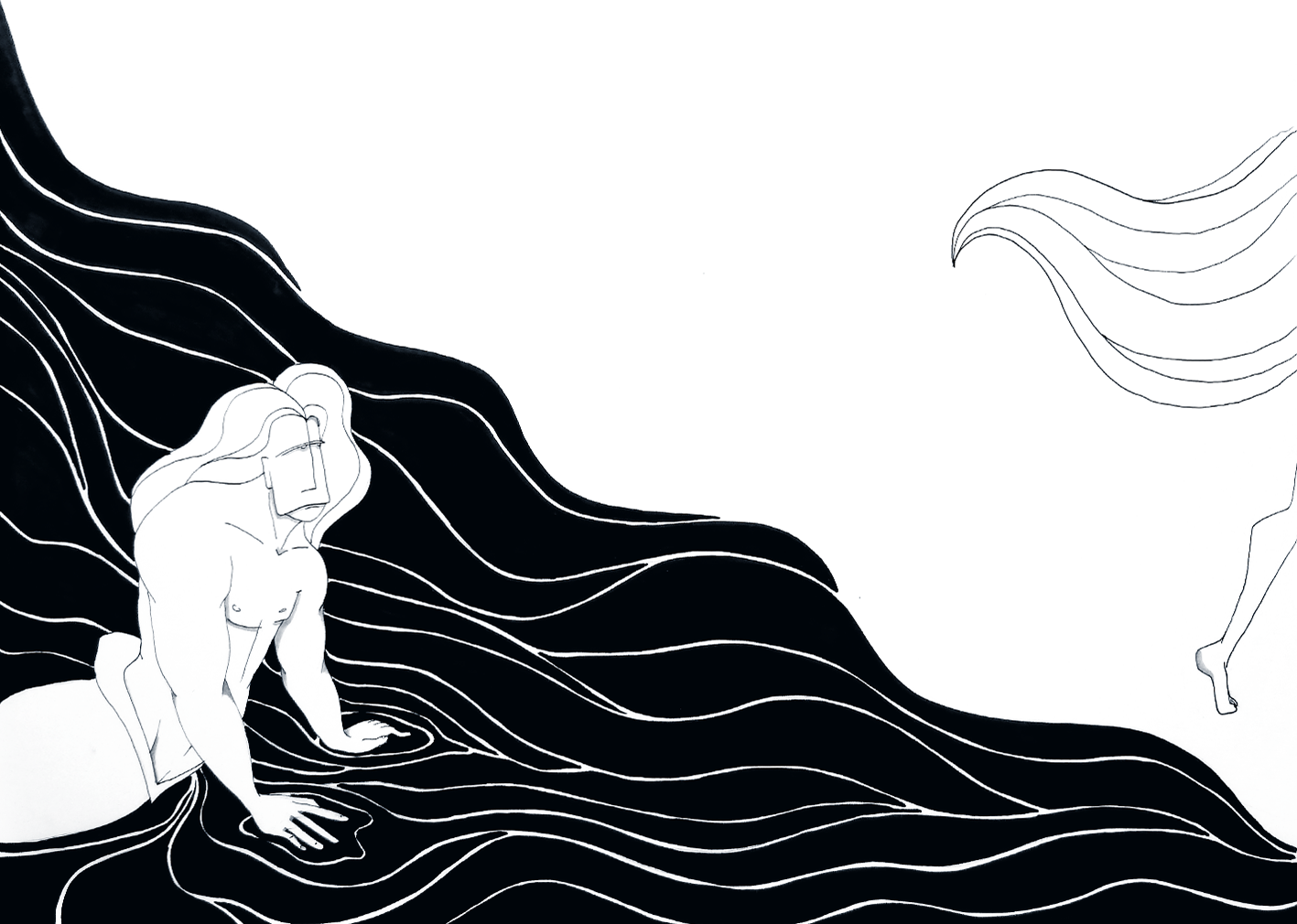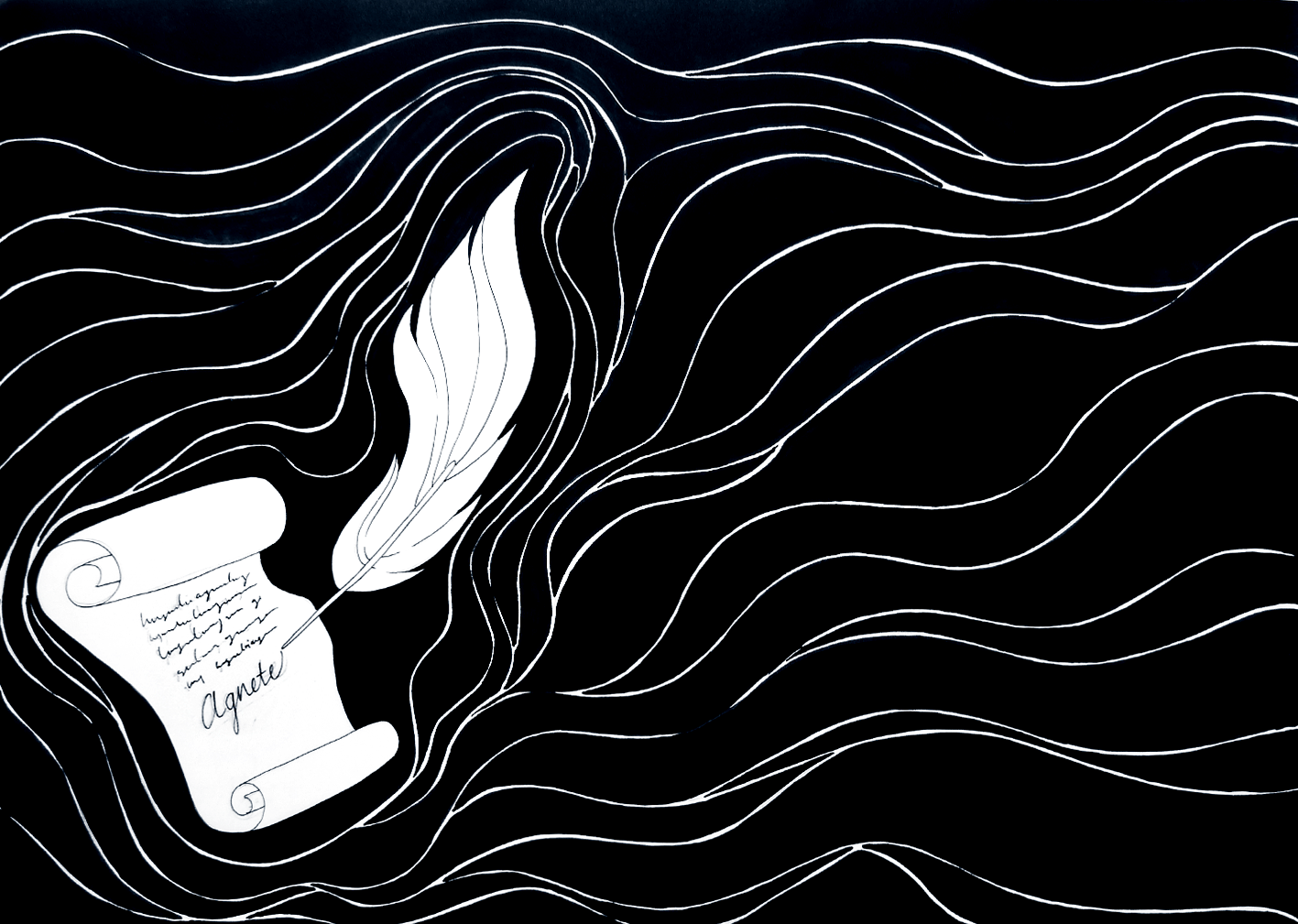 Som en del af min optagelsesprøve til Designskolen i Kolding valgte jeg at illustrere den gamle danske folkevise “Agnete og Havmanden”. Visen handler om den unge kvinde Agnete, der forlader sit liv på land for at følge en havmand ned i havet, hvor de sammen får børn. Efter mange år længes hun tilbage til landjorden og vælger at forlade sin havmand og børnene i havet, trods hans advarsler og bønner. Denne fortælling rummer dybe lag af symbolik og følelser, og jeg valgte at fokusere på temaet om manglende refleksion og ansvar, som også findes i moderne kontekster såsom skilsmisser.